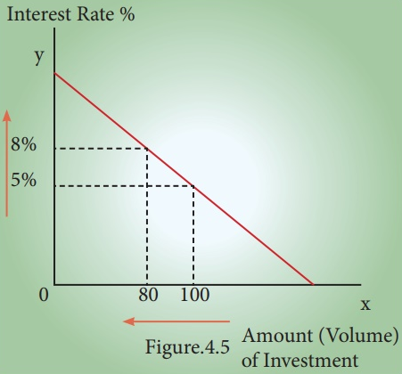 If interest rates rise from 5% to 8 %, then we get a fall in the amount of investment from ? 100 cr to ? 80 cr.
