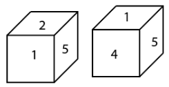 Two different positions of the same dice are shown. Find the number opposite to the face having 4.