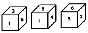 Take two dice which contain common numbers . ex.we take last two dice 5 is same in both dice .