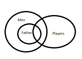 all fathers are men but some men may not be father and some players may be men but even we know women too play so option one represents the correct venn diagram for this.