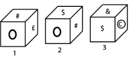 Three different positions of the same dice are shown Select the option that will be opposite to the ...........