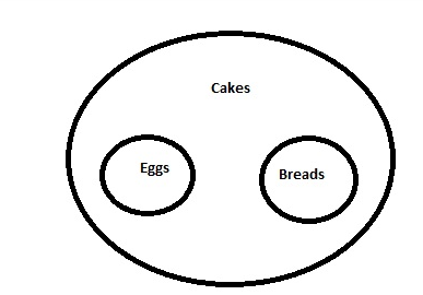I. Some cakes are breads.-- Definitely true II. Some breads are eggs.-- may be true III. No bread is an egg.--- may be true. Hence i and either of ii or iii is true and so option 2 is the correct answer.