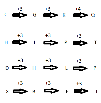 In all the letter clusters +3 is being added up to the previous letter.Hence we can say that option 1 is the correct answer.