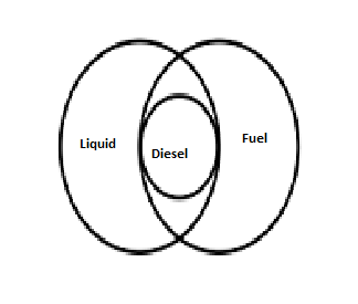 From the above venn diagram we can conclude that all diesel are liquid , all diesel are fuel and some fuel may be liquid.Hence option 1 best represents the given classes.