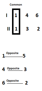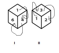 From I and II, 1 is common in different positions of the same dice.So we start counting from 1 in clockwise direction