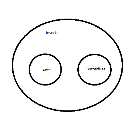 All ants and butterflies are insects ,they just belong to different insect families that have different characteristics.Hence option 3 is the best representation of the given classes.