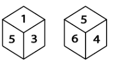 Here, we have two dice and each have the number 5. 1,3,4,6 are at the adjacent sides of 5. So they cant be at the opposite surface of 5. Only 2 is left so, 2 is at the opposite surface of 5.Hence we can conclude that option 3 is the correct answer for the given question.