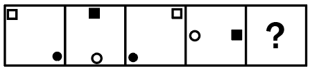 Here figure 1 and 3 are related and figure 2 and 4 are related. So next figure will be related to figure 1 and 3. Here white squares and black circles are moving in 90 degree clockwise direction. So in the answer figure white squares will be at the right bottom and black circles will be at the top left side.Hence option 3 is the correct answer.