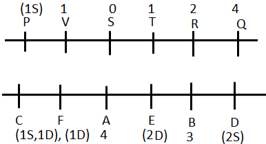 S sits third to right of Q. Either S or Q sits at an extreme end of the row and one of them is married. The one who faces Q sits second to right of E. The one who is sitting 2nd to the left of T has four kids. The one who is sitting to the immediate left of P has the same number of kids as the number of persons sitting to the left of the person who is sitting opposite to V. Two people sit between B and F. The number of kids R have is the same as the sum of the number of kids of the immediate neighbours of S. The person sitting to the immediate right of B has no daughters. The person sitting to the immediate left of B has no sons. Neither B nor F sits at an extreme end of the row. The immediate neighbour of B faces the person who sits third to left of P. Number of daughters of E is equal to the number of sons of D. A has the same number of kids as Q. The sum of the number of kids of E and D is equal to the number of kids of A. R and T are immediate neighbours of each other. F has no son and only one daughter whereas the person who is sitting at one of the ends has only one son and has one child.C sits second to the left of A. Total number of daughters of F and E is equal to the total number of kids of B. C has equal number of daughters and sons. T does not face the immediate neighbour of D but she has only one kid. The number of kids of both the persons who are sitting at the ends of one of the rows (either row1 or row2) is equal.