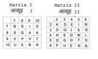 In the following question, a word is represented by only one set of numbers as given in any one of the alternatives. The set of numbers given in the alternatives is represented by two classes of alphabets as in two matrices given below.The columns and rows of Matrix I are numbered from 7 to 10 and that of Matrix II from 2 to 6. A letter from these matrices can be represented first by its row and then by its column, example, D can be written as 23 and 32.