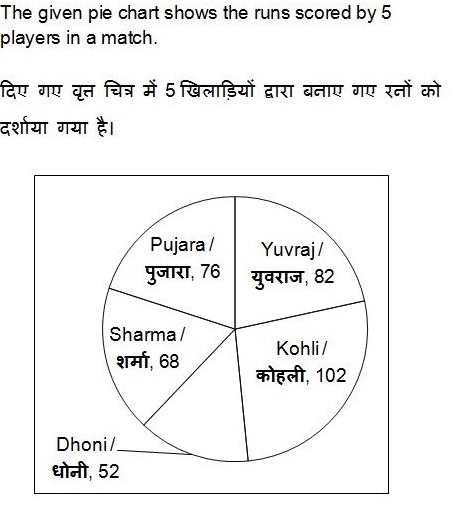 What is the central angle (in degrees) made by the sector of runs scored by Yuvraj?