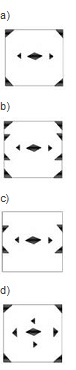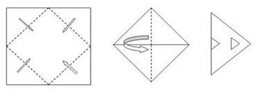 A square sheet of paper is folded and punched as shown below. How will it look when opened?