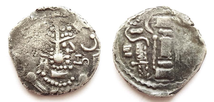 During the 11-12th Cent. A.D. the Chauhan rulers of Sambhar and Ajmer introduced silver and copper coins bearing the likeness of Goddess Lakshmi/bull-horseman.