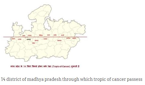 Tropic of cancer passes from how many districts of Madhya Pradesh?