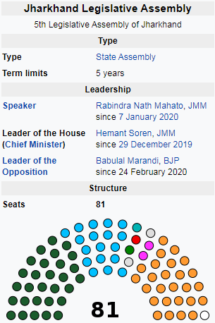 Multiple Choice Questions on Total Number of Legislature Unicameral in Jharkhand ........ for State General Knowledge (GK) Preparation