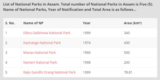 How many national parks are there in assam?