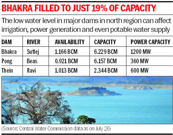 Low Water Level in Major Dams in North India :