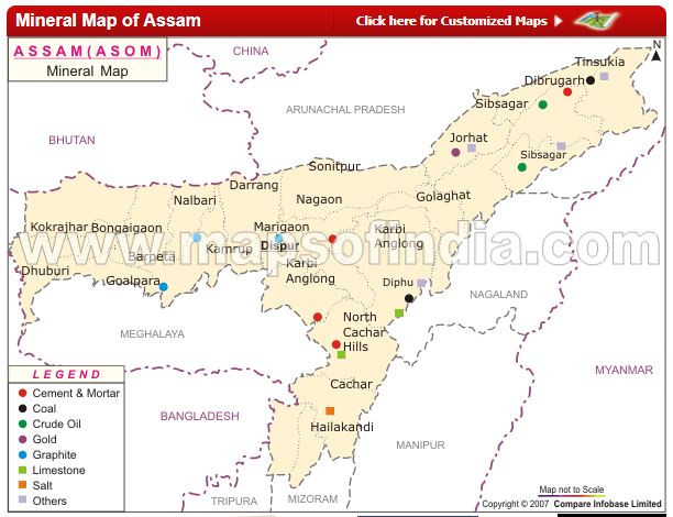 Assam is rich in mineral resources like Coal (320 Mn.T.), Limestone (703 Mn.T.), Iron Ore(11 Mn.T) and Granite(1 Bn. Cu. Mtrs) along many more resources like Fireclay, Lithomarge, Fuller's Earth, Sillimanite and Glass Sand. The coal found in Assam has a high sulphur content and high volatile matter content, thereby reducing its cokeability.