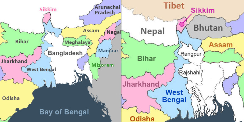 A part of the ethno-linguistic Bengal region, it borders Bangladesh in the east, and Nepal and Bhutan in the north. It also borders the Indian states of Odisha, Jharkhand, Bihar, Sikkim, and Assam.