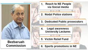 The committee pointed out several problems or concerns of people from North East India. For example: sense of insecurity and vulnerability in metro areas, wrong perception of local people about lifestyle of people from North East, discrimination in daily life, sexual harassment, mistaken as foreigners at tourist places, verbal abuse and racial comments, discrimination and harassment at work, physical assault, discrimination and apathy of law enforcing agencies etc. M.P. Bezbaruah Committee Recommendations The committee made several recommendations to bridge the gap in understanding to integrate the people of North East India into the broader national identity of India and to build connectivity of minds.