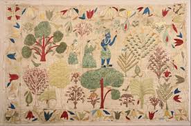 The Rumal is a Persian word for handkerchief, a square piece of cloth, and the term Chamba Rumal is associated with for the embroidered work done on the hand spun 'khaddar' or a fine muslin cloth, which is in square and oblong format. „Chamba Rumal? is a pictorial craft that represents unique embroidery, which originated and flourished during 17th–18th centuries in Chamba town in the State of Himachal Pradesh. In fact „Rumal? is a Persian word which means a handkerchief. However, the embroidery work done on a hand spun khaddar or a fine muslin cloth which is in square format, is known as Chamba Rumal. The Chamba Rumal derives itinspiration from Paintings in their general layout and themes, there is a predominance of figure of deities, especially of Vishnu in his different forms.