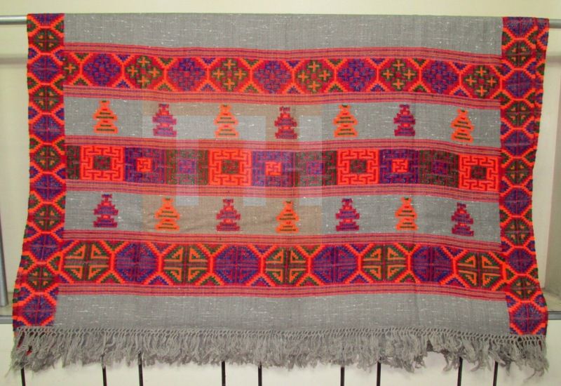 The Kinnauri decorative designs are largely geometrical, executed in very soft and pleasing pastel shades. In Kinnauri Shawls, there is intricate use of the stylized Buddhist symbols and complex graphic patterns, consisting of hexagons (gyatongor tank) and square (palpe) etc.These devices are so profusely executed on brick red colour overwhelms the senses. The Buddhistsymbols executed in the five primary colours – white, yellow, red, green and blue represent five elements viz., water, earth, fire, ether and air respectively, while all the five colours are used in the ornamentation, reds, yellows and blues usually dominate.Kinnauri Shawl was registered under Geographical Indications of Goods (Registration and Protection) Act,1999 on 4 December 2008.