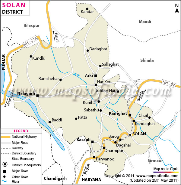 Solan is crowned as the “City of Red Gold“, in reference to the bulk production of tomatoes in the area The town is situated between Chandigarh and Shimla , on the Kalka-Shimla National Highway. The Kalka-Shimla narrow gauge heritage railway line, built by the British passes through Solan and is a recognised World Heritage site.