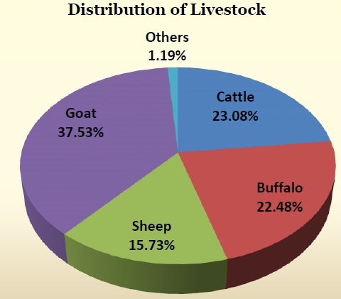 The total livestock population in the last five and half decades in Rajasthan was noticeably increased from 32426.98 thousand number in 1956 to 57732.20 thousand number in 2012. The increase in buffalo population during this period was more than four times. As far as population of small ruminants are concerned, sheep and goat dominated the livestock population and constituted over 50 per cent of livestock population in the state.