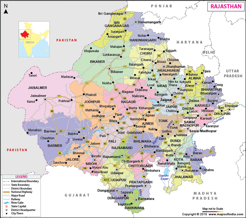 Rajasthan literally, "Land of Kings") is a state in northern part of India. The state covers an area of 342,239 square kilometres (132,139 sq mi) or 10.4 percent of the total geographical area of India. It is the largest Indian state by area and the seventh largest by population. Rajasthan is located on the northwestern side of India, where it comprises most of the wide and inhospitable Thar Desert (also known as the "Rajasthan Desert" and "Great Indian Desert") and shares a border with the Pakistani provinces of Punjab to the northwest and Sindh to the west, along the Sutlej-Indusriver valley. Elsewhere it is bordered by five other Indian states: Punjab to the north; Haryana and Uttar Pradesh to the northeast; Madhya Pradesh to the southeast; and Gujarat to the southwest.