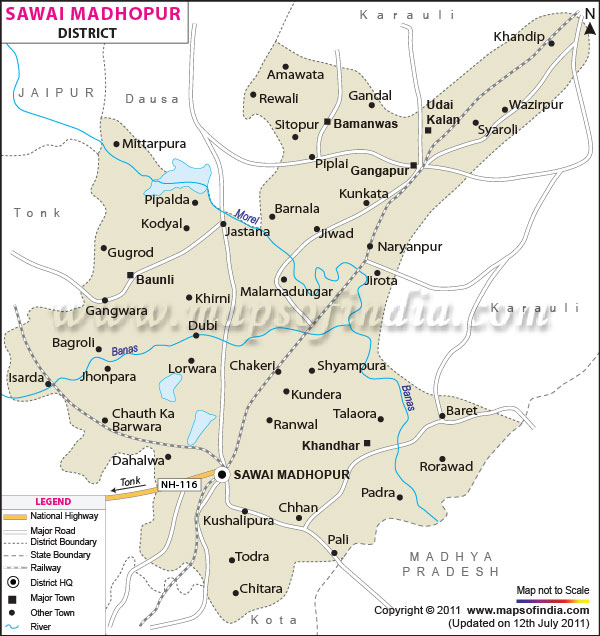 Sawai Madhopur is a city and Municipal Corporation (Nagar Parishad) in the Sawai Madhopur District in Rajasthan state, India. It is the administrative headquarters of Sawai Madhopur District of Rajasthan.Sawai Madhopur District comes under BharatpurDivisional Commissionerate. Near to Sawai Madhopur is the Ranthambore National Park which is 7 km from the railway station and Ranthambore Fort, a UNESCO World Heritage Site. In Sawai Madhopur is the Trinetra Ganesh temple. Guavas are grown in the 40 Km region around the City.