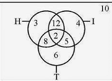 Questions are based on the following diagram in which there are three intersecting circles. H representing The Hindu, I representing Indian Express and T representing The Times of India. A total of 50 persons were surveyed and the number in the Venn diagram indicates the number of persons reading the newspapers.