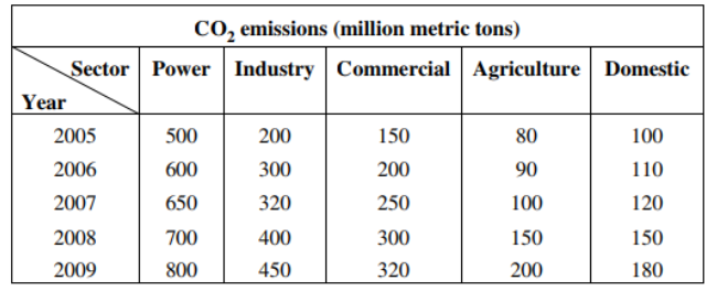 For a county CO2 emissions (million metric tons) from various sectors are given in the following table. Answer the questions base on the data given