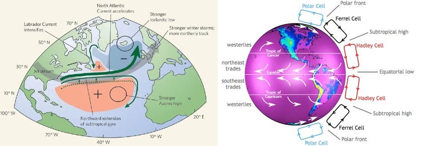 Azores High is a subtropical high-pressure system that extends over the eastern subtropical North Atlantic and Western Europe during winter.