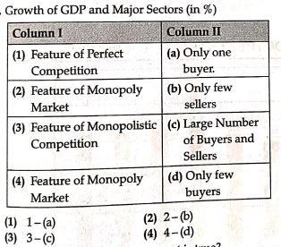 . Option (3) is correct. Explanation: (a) Feature of Perfect Competition : Large Number of buyers and sellers (b) Feature of Monopoly Market : Only one seller (c) Feature of Monopolistic Competition : Large Number of Buyers and Sellers (d) Feature of Monopoly Market: Large number of buyers