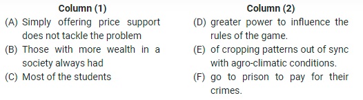 Sentence Connector- Directions: You are required to match statements from columns 1 and 2 and find which of the following pairs of statement make sense meaningfully and grammatically.