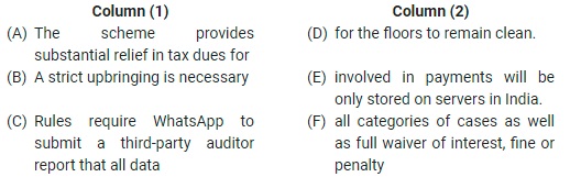 Sentence Connector- Directions: You are required to match statements from columns 1 and 2 and find which of the following pairs of statement make sense meaningfully and grammatically.