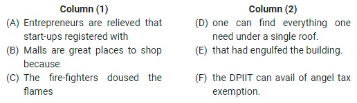 Sentence Connector- Directions: You are required to match statements from columns 1 and 2 and find which of the following pairs of statement make sense meaningfully and grammatically.