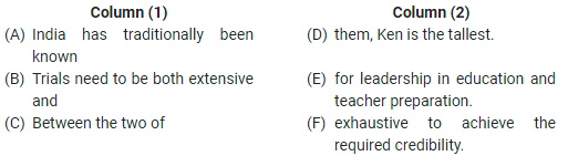Sentence Connector- Directions: You are required to match statements from columns 1 and 2 and find which of the following pairs of statement make sense meaningfully and grammatically.