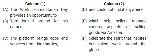 Sentence Connector- Directions: You are required to match statements from columns 1 and 2 and find which of the following pairs of statement make sense meaningfully and grammatically.