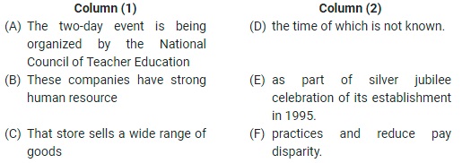 Sentence Connector- Directions: You are required to match statements from columns 1 and 2 and find which of the following pairs of statement make sense meaningfully and grammatically.