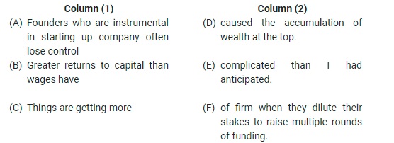 Sentence Connector- Directions: You are required to match statements from columns 1 and 2 and find which of the following pairs of statement make sense meaningfully and grammatically.