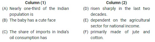 Sentence Connector- Directions: You are required to match statements from columns 1 and 2 and find which of the following pairs of statement make sense meaningfully and grammatically.
