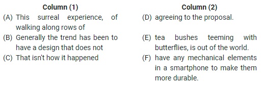 Sentence Connector- Directions: You are required to match statements from columns 1 and 2 and find which of the following pairs of statement make sense meaningfully and grammatically.