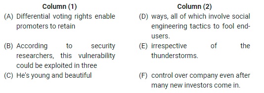 Sentence Connector- Directions: You are required to match statements from columns 1 and 2 and find which of the following pairs of statement make sense meaningfully and grammatically.