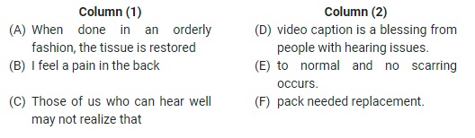 Sentence Connector- Directions: You are required to match statements from columns 1 and 2 and find which of the following pairs of statement make sense meaningfully and grammatically