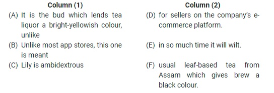 Sentence Connector- Directions: You are required to match statements from columns 1 and 2 and find which of the following pairs of statement make sense meaningfully and grammatically