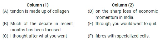 Sentence Connector- Directions: You are required to match statements from columns 1 and 2 and find which of the following pairs of statement make sense meaningfully and grammatically