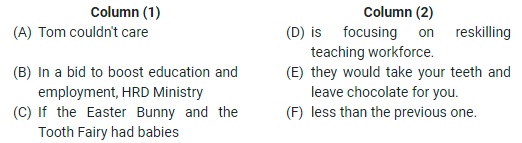 Sentence Connector- Directions: You are required to match statements from columns 1 and 2 and find which of the following pairs of statement make sense meaningfully and grammatically