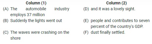 Sentence Connector- Directions: You are required to match statements from columns 1 and 2 and find which of the following pairs of statement make sense meaningfully and grammatically.