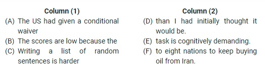 Sentence Connector- Directions: You are required to match statements from columns 1 and 2 and find which of the following pairs of statement make sense meaningfully and grammatically.